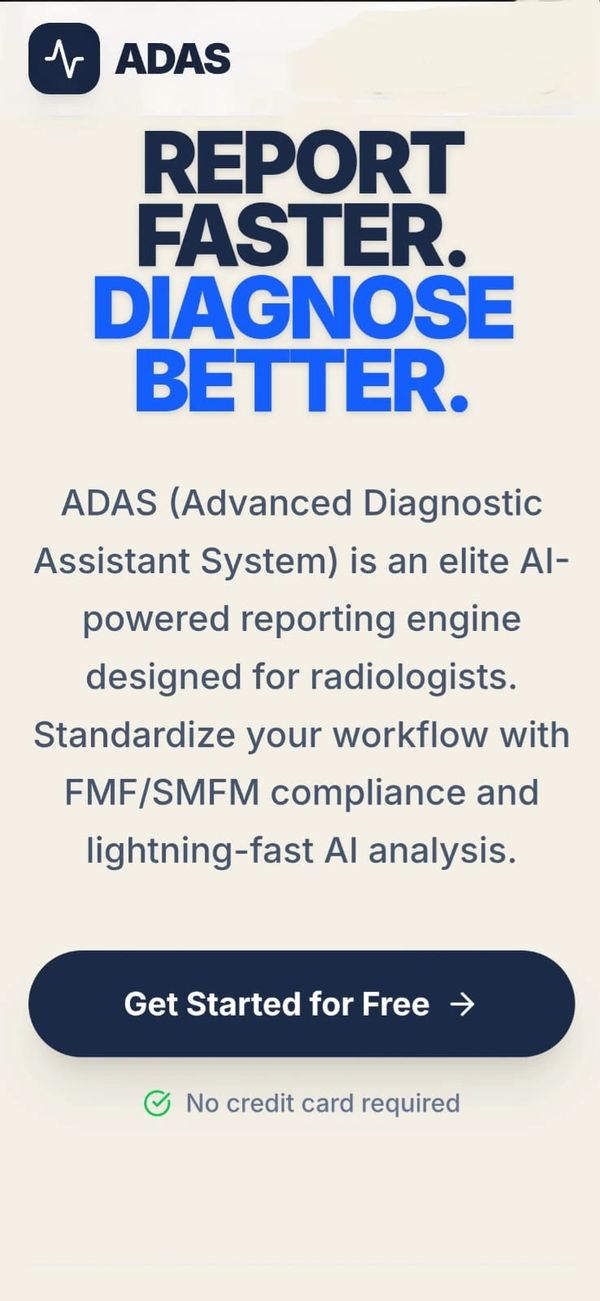 - Radiologist-Centric Design: This web-based application is an Advanced Diagnostic Assistance System (ADAS). It is designed strictly for use by Qualified Radiologists.
